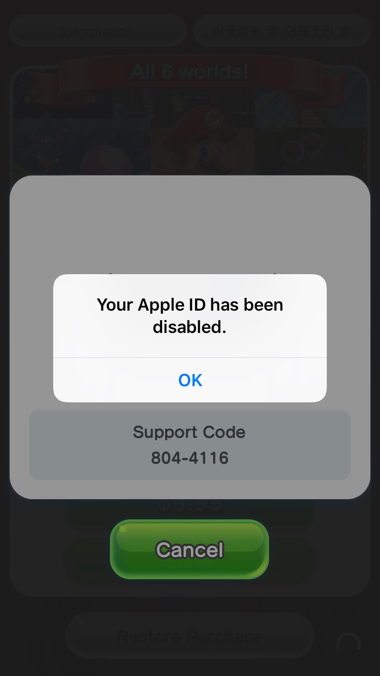 제 생각에 "Your Apple ID was disabled"라는 오류 메세지는,
