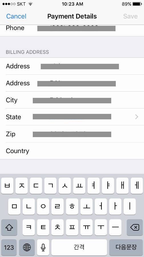 2. 카드 등록 시 사용하신 주소 또는 개인정보 (예: Billing address)와 iTunes에서 입력하신 정보가 일치하지 않을 경우.