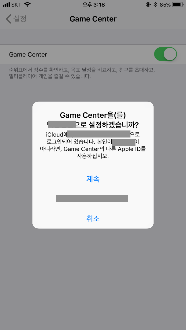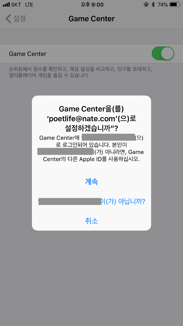아마도, 이메일 주소를 바꾸는 시점에서, GameCenter DB에 정보가, 깔끔하게 변경되지 않은 것으로 추정되네요.