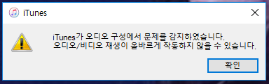 iTunes 는 모든 시스템 구성요소가 정상적인 상태의 PC 에서 정상작동 할 수 있도록 설계되어 있습니다. 해당 문구가 보인다면 일단 오디오 카드의 문제해결로 오디오구성 오류를 붙잡은 뒤에 PC 를 재시동 해서 iTunes 가 실행되는지 확인해 볼 수 있습니다.