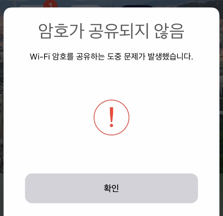 블루투스 켜져있고 와이파이 비밀번호 공유 확인 눌러도