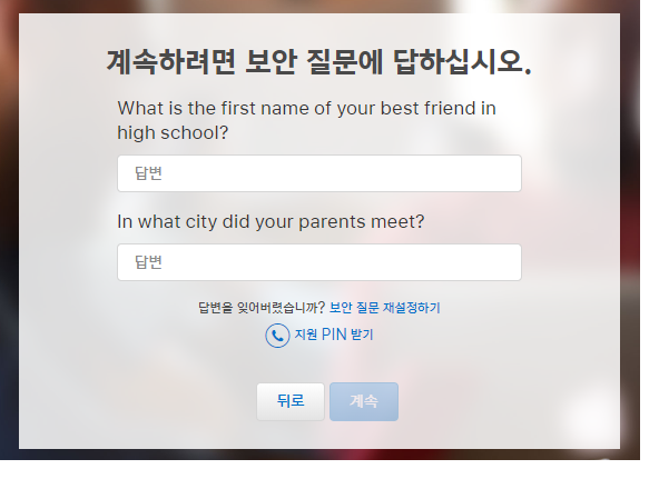 그래서 [보안 질문 재설정하기] 을 시도 하면