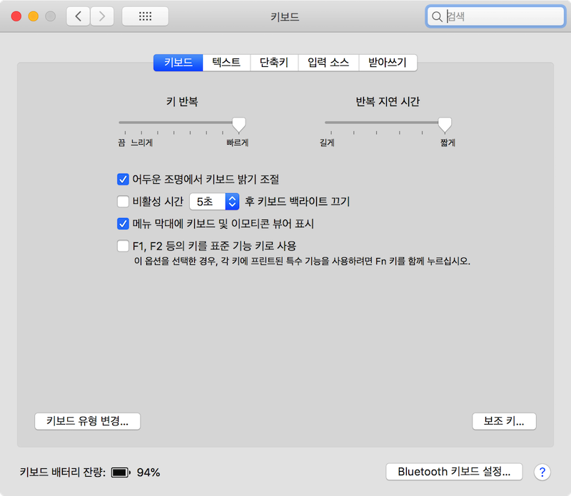 키보드 설정 관련 - F1,F2 등의 키를 표준 기능키로 사용