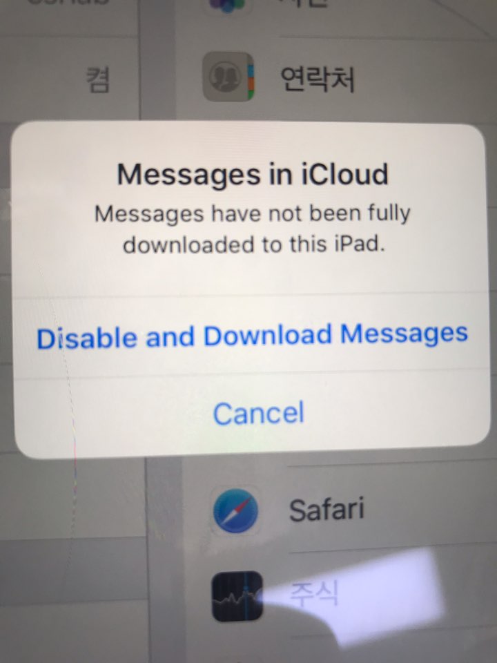 제가 아이폰7+ 하고 아이페드를 같이 사용하는데요 사업상 제가 중요한 문자가 오고가기때문에 아이클라우드에 메시지를 동기화 해놓고 사용합니다. 처음에 아이페드를 아이클라우드에 로그인해서 설정 -> 아이클라우드->메시지를 활성화 해놓았을때 지금까지 제가 보내고 받은 메시지가 모두 다운로드가 됬었는데 어느 순간부터 상대방이 보낸 메시지만 다운로그가 됩니다. 혹시나해서 핸드폰에 메시지 동기화가 꺼져있나 확인해봐도 켜져 있구요. 사진이나 다른것들은 정상적으로 아이페드에서 다운로드 하고 있습니다. 그런데 유독 문자만 상대방이 보낸문자만 다운로드하고 제가 보낸 메시지들은 다운로드 하고 있지 않습니다. 아이클라우드 저장공간 관리에서 메시지부분 확인해봐도 4.8MB가 저장되 어있구요. 그래서 혹시나해서 아이페드에 설정->아이클라우드->메시지 활성화를 꺼봤는데 사용자가 업로드한 파일