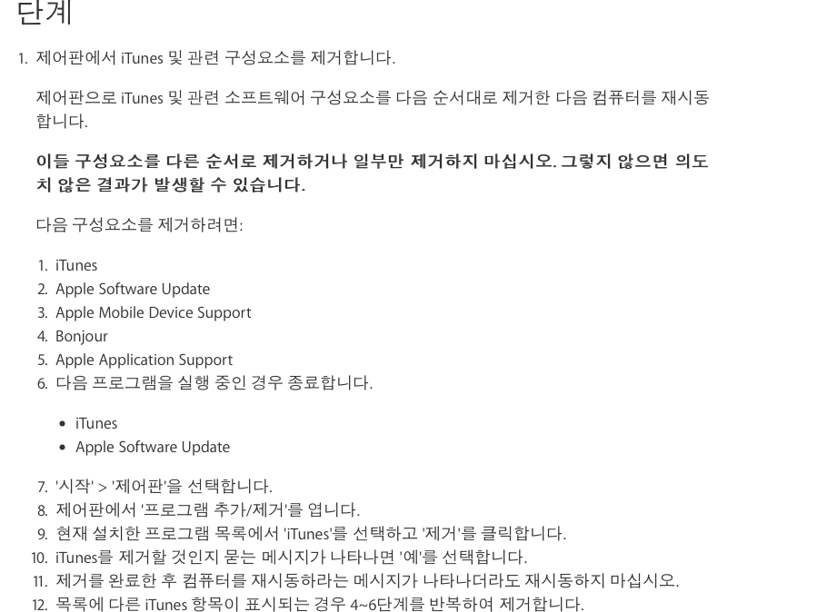 아이튠즈가 제거도 안되고 설치도 안되고 실행도 안되요