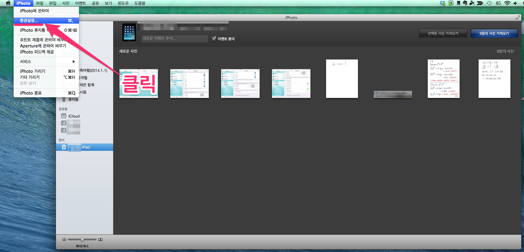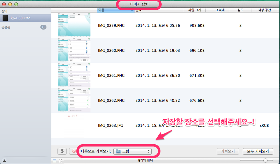 ...저는 iPhoto로 가져와서 그 사진을 바탕화면으로 가져 와서 다시 페북이나 블로그에 옮기곤 하거든요.