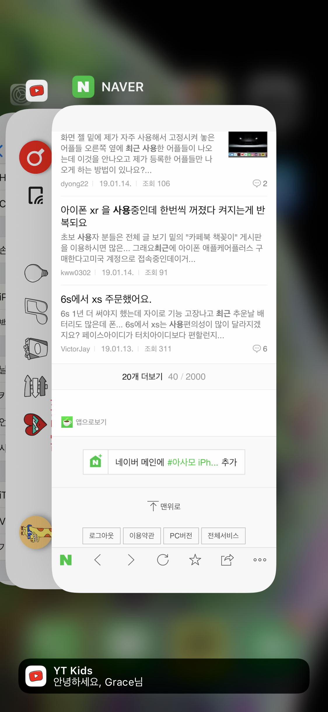 최근 사용앱에 알림