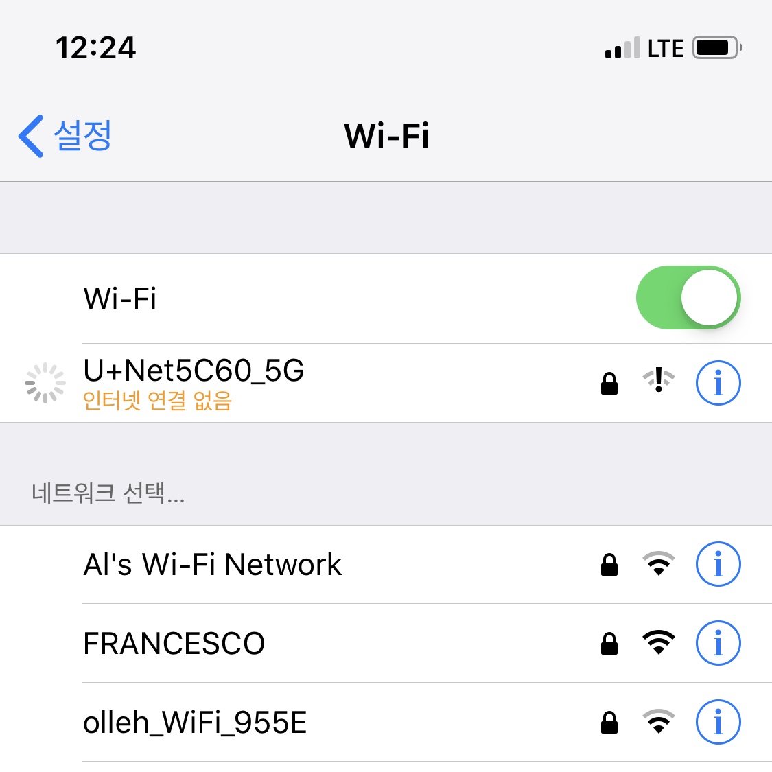 아이폰Xs 와이파이 5g에 연결 되질않네요. 전에쓰던 갤럭시는 같은 와이파이에 연결되는걸로봐서 아이폰 문제같은데 어떻게 해결하나요? 휴대폰 구입한지 4주정도 되었습니다.