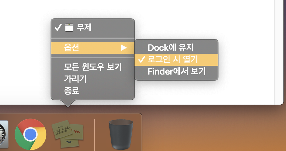mojave 업데이트 후 스티커앱 로그인 시 열기 해제 불가능