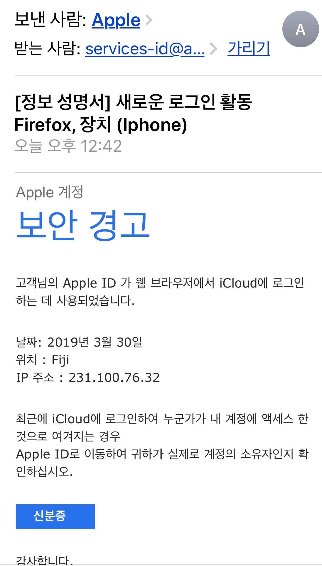 다음 사용자의 사용자 프로파일: jonghyun103 jonghyun103 사용자 레벨: 레벨 4 1,403 포인트 jongsik274 님에게 답변 2019. 3. 30 오전 02:36 스팸 이네요다른곳에서 로그인해도 저렇게 IP & 위치 제공하지 않아요 답글 링크
