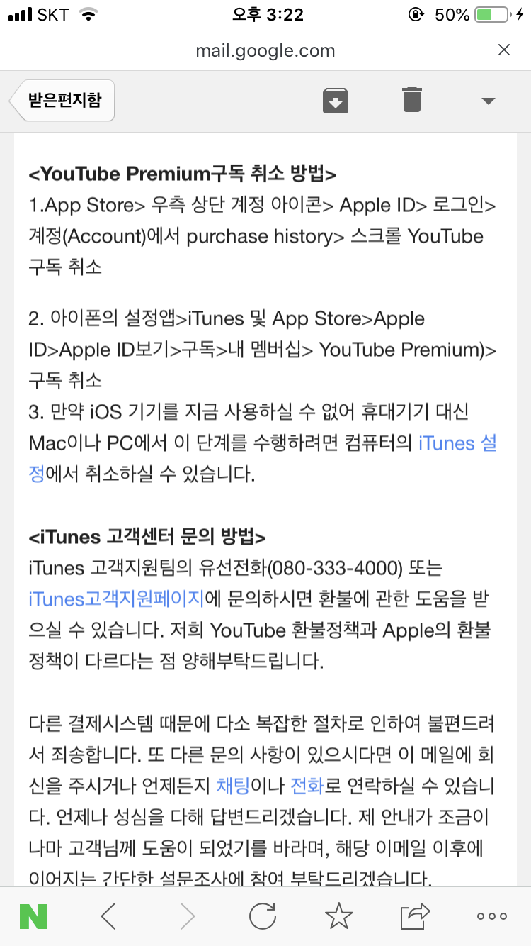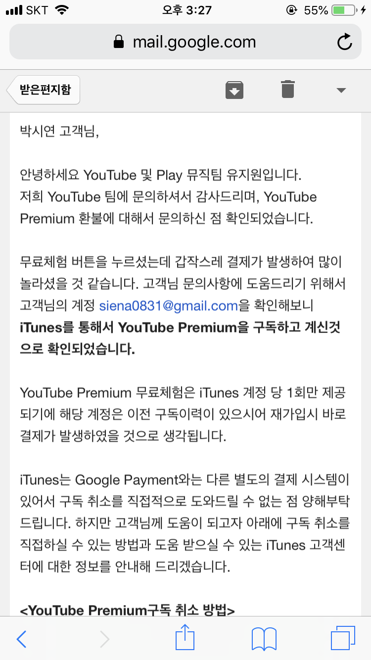 아이튠즈를 통해 유튜브 레드를 결제하게 되었는데 환불 가능한가요