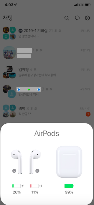 양쪽 Airpods의 배터리가 동일한 100%에서 사용해도 다르게 소모되었다는 말씀이시군요.