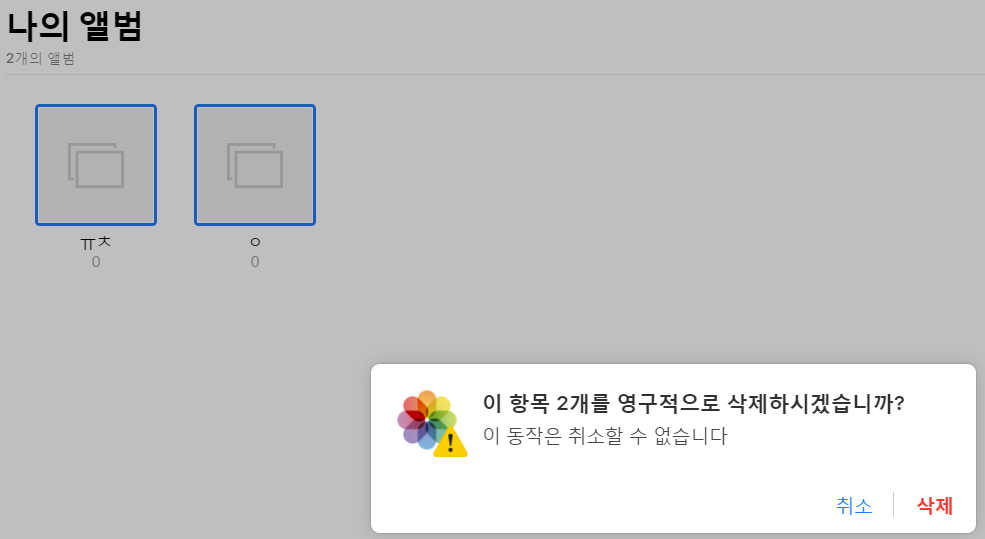 앨범은 다중 선택이 안 되므로 하나씩 지울 수 밖에 없습니다