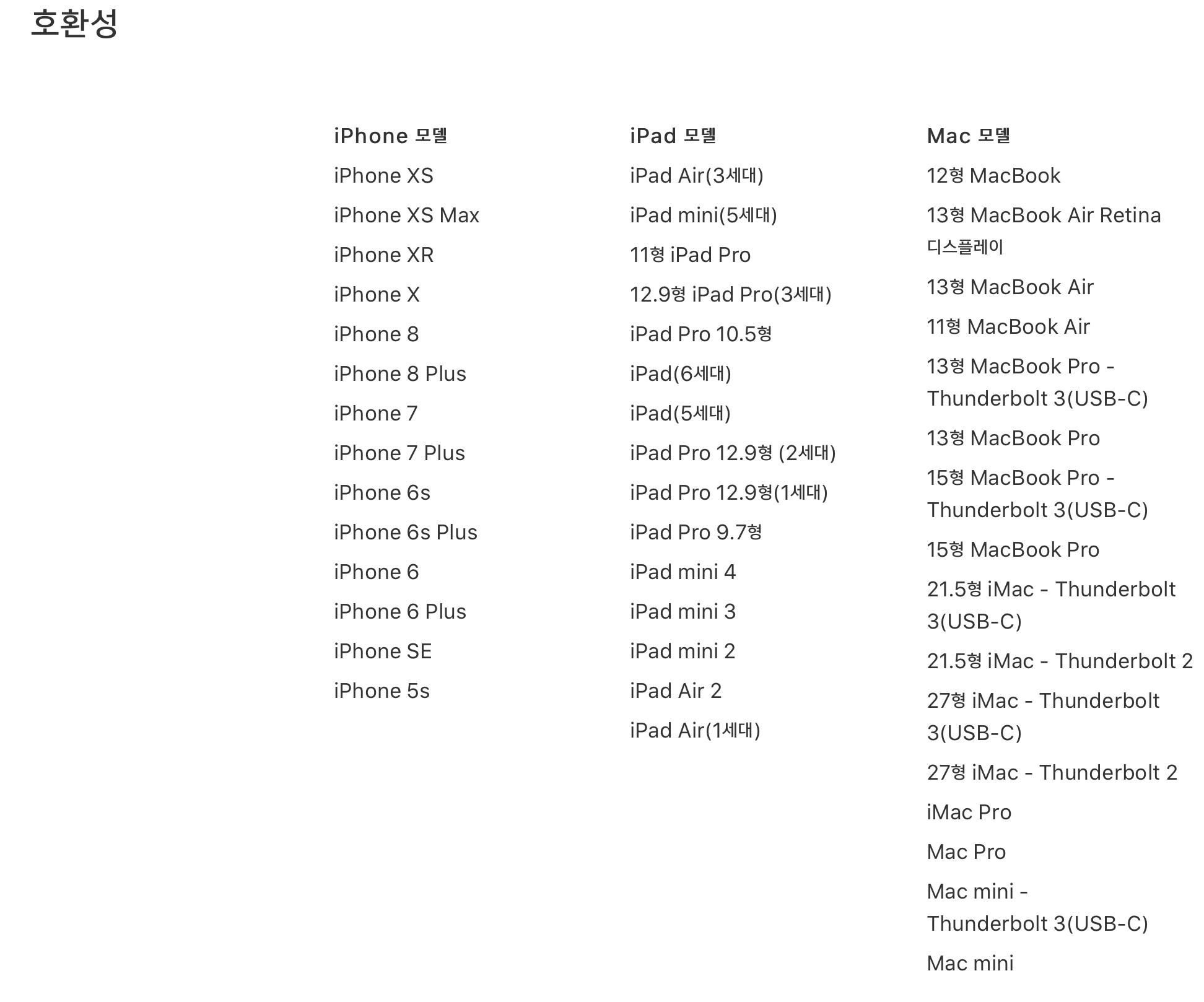 애초에 호환성이나 시스템 요구사항에 애플 제품외 다른 제품은 없으므로