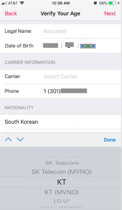 아이뮤직을 가입후 성인인증을 하려고 하는데 통신사 선택권이 한국의 통신사 밖에 없어서 성인인증이 불가 합니다.