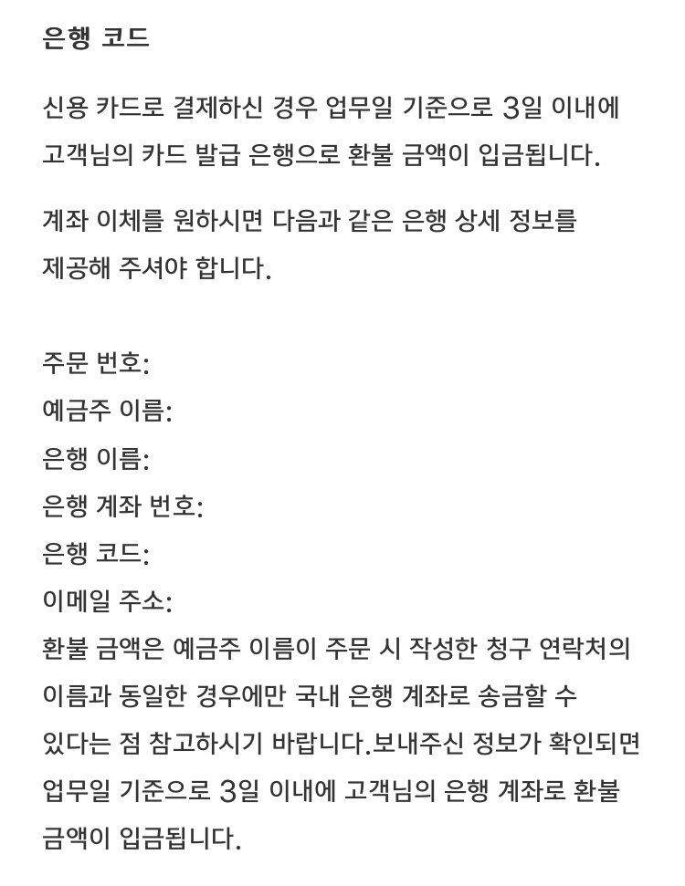 환불은 카드 발급 은행으로 환불 금액이 입금된다고 하는데 이게 무슨 말인가요? 제 계좌 제 카드로 입금되는게 아닌건가요? 은행으로 입금되면 또 기다려야 하는 건가요? 계좌 이체로 하는 거는 어떻게 신청해야 하는 건가요? 제가 이미 셀프서비스?로 반품 신청했는데 계좌 이체로 가능한 건가요? 최대한 빠르게 환불 받고 싶은데 어떻게 해야 하는지 모르겠네요 ㅠㅠ