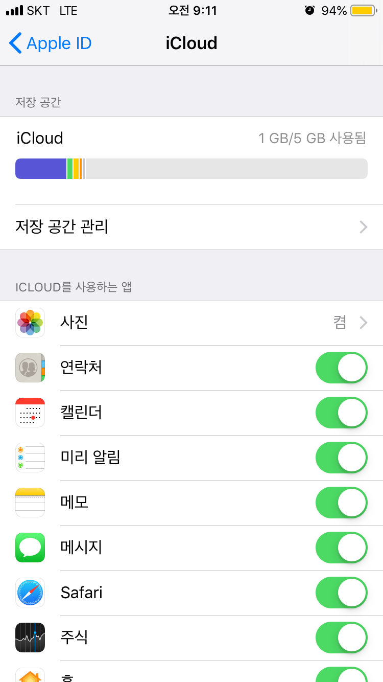 백업에는 사진이랑 앱 데이터도 포함되므로 5기가에 담을 수 있는 상태인지 아이폰 저장 공간부터 확인 해 보세요