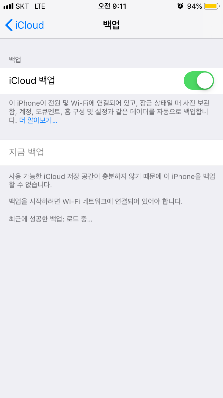 제목 그대로 클라우드 공간이 충분하지만 백업시 공간이 부족하다면서 백업이 안 되는 경우입니다.