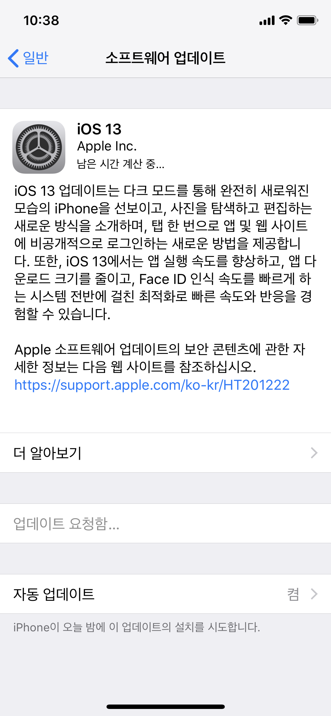 어제 낮부터 ios13업데이트를 진행했습니다.