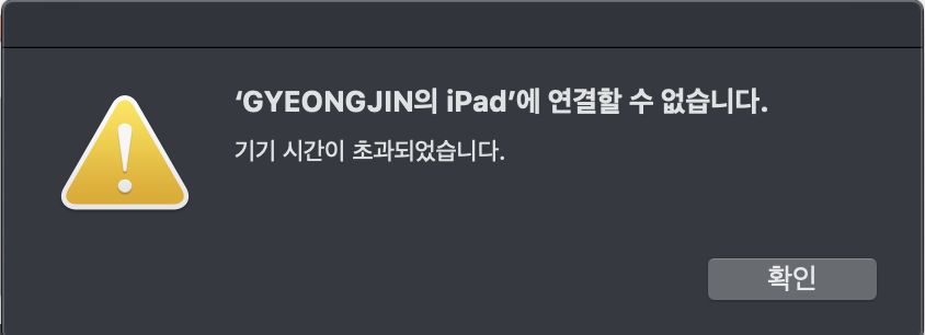 위와 같이 아이패드에 사이드카를 연동하려고 하면 에러가 나옵니다.