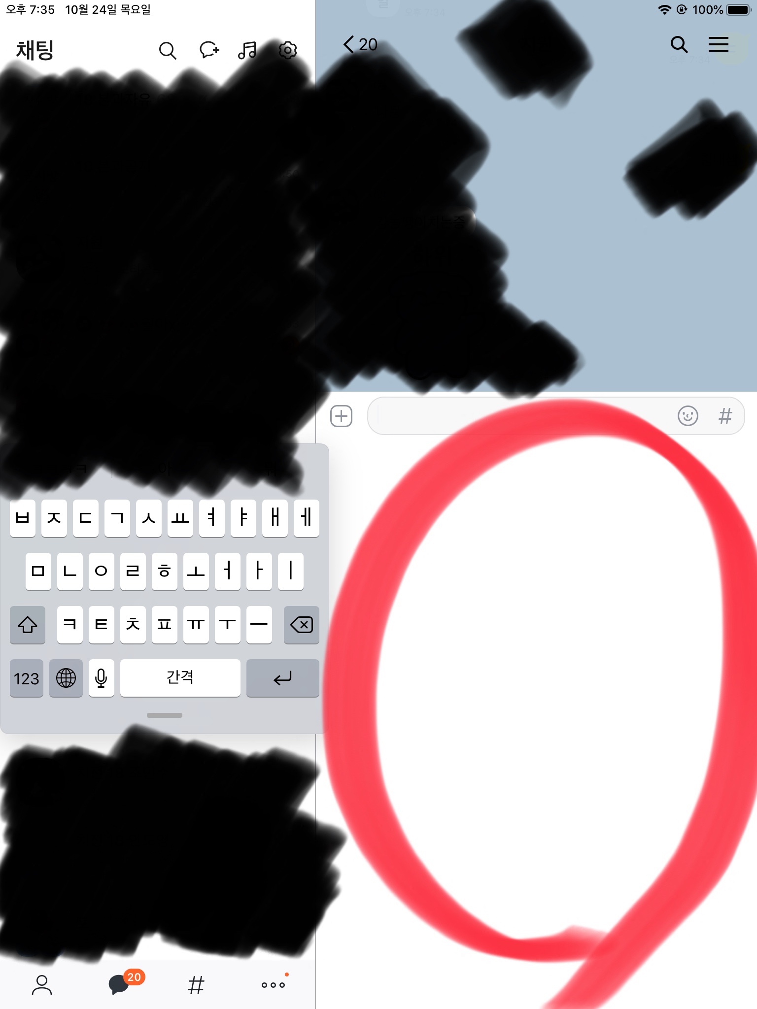 카카오톡에서 축소 키보드를 사용하면 다음 사진처럼 공간이 너무 많이 남습니다.