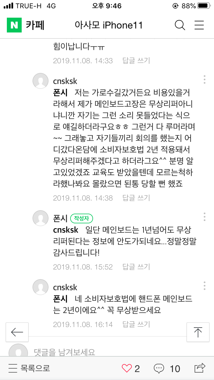 바로 당일 태국에 있는 아이케어 방문했더니 메인보드 문제라는 얘기를 들었고, 그때 구매일이 2017.11.24 임을 확인했습니다.