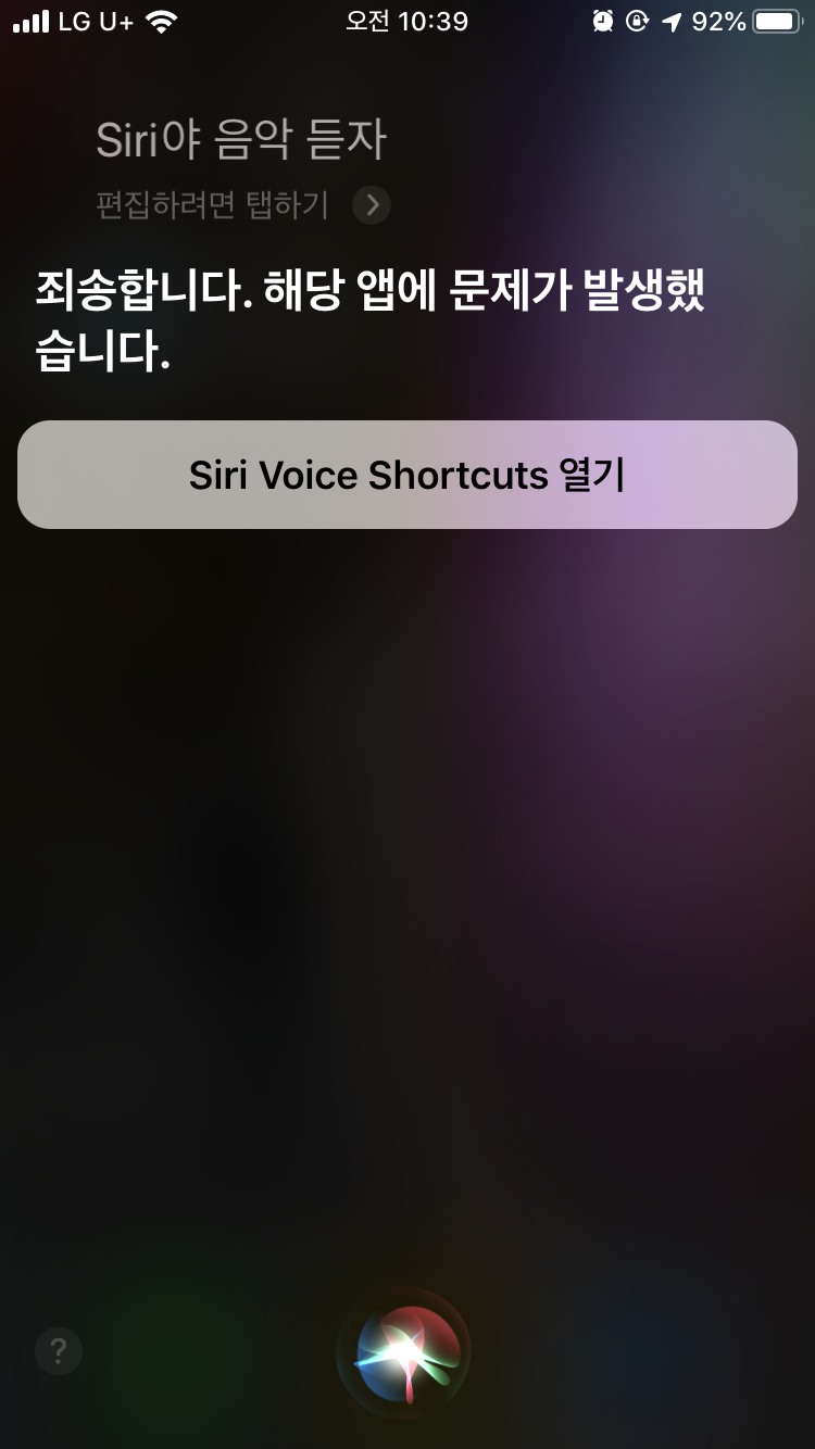 siri로 명령 시 사진과 같은 답변이 돌아오네요