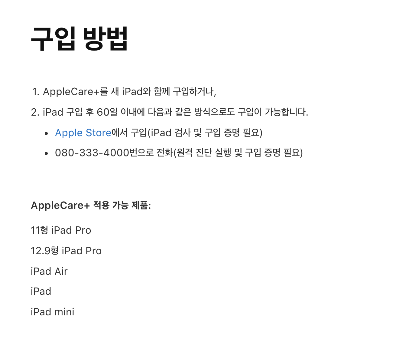 AppleCare+ 구체적인 정보도 확인 할 수 있습니다