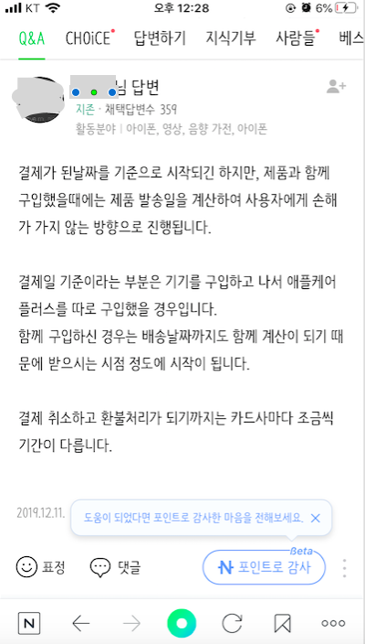 애플케어플러스 환불 시 무조건 구입일 기준인가요?? 애플케어플러스를 기기와 함께 구입했든 따로 구입했든? 인터넷에선 함께 구입한 경우는 배송날짜까지 고려되어서 진행되고 따로 구입한 경우는 결제일 기준이라고 하던데 인터넷이 잘못된 정보인거죠?