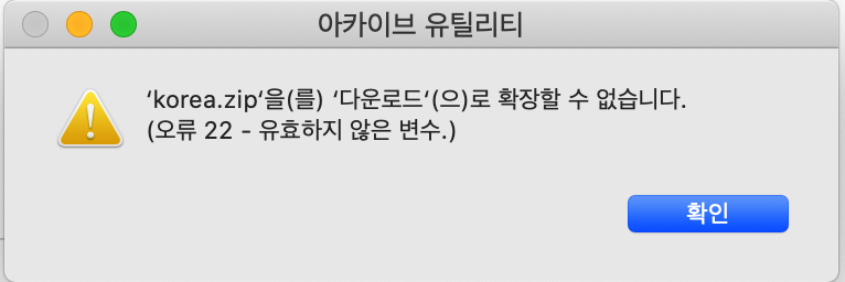 OS업데이트 이후 zip을 풀면 계속 아래와같이 뜨네요...