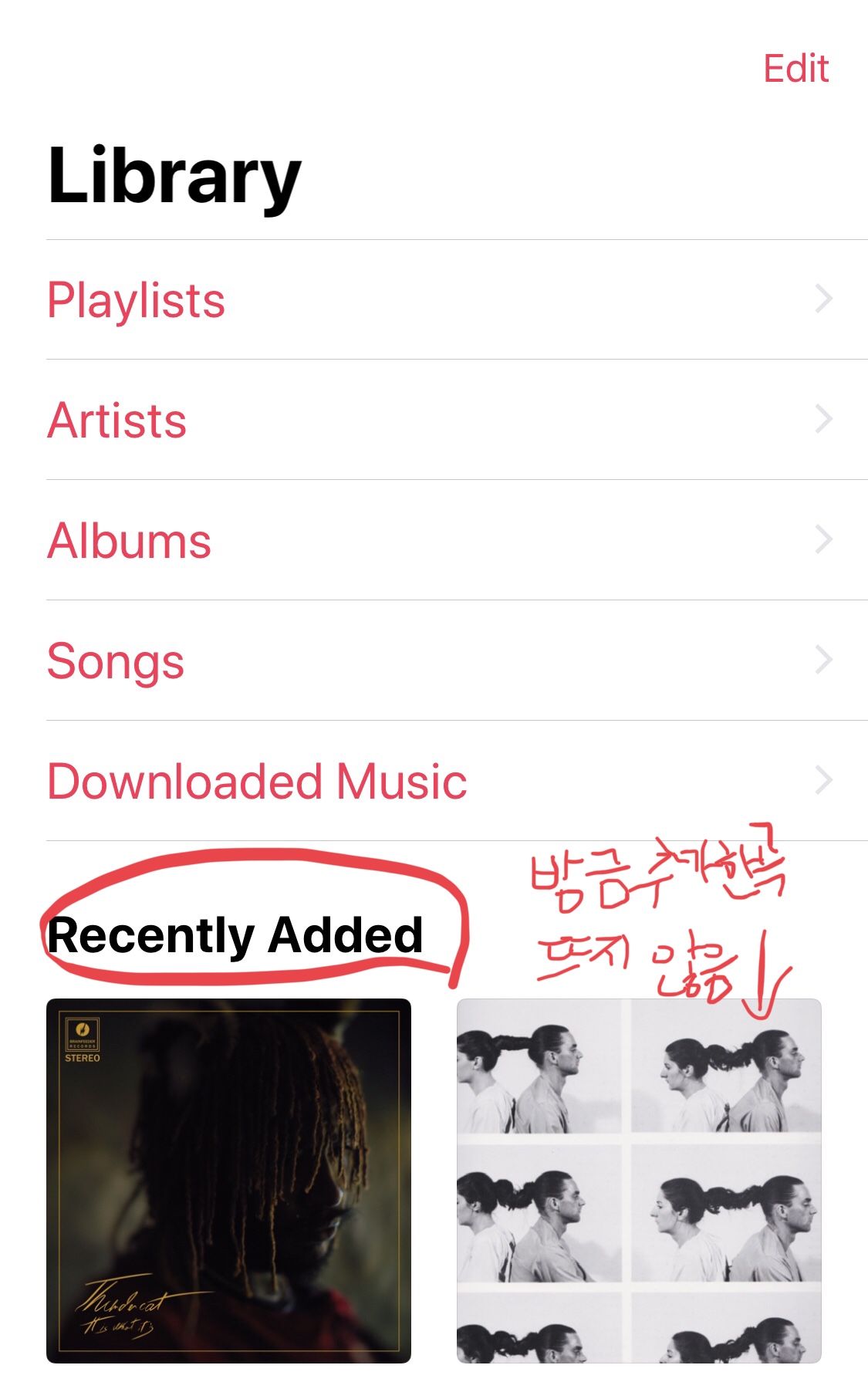 - 최근추가목록에 방금 보관한 곡 뜨지 않음