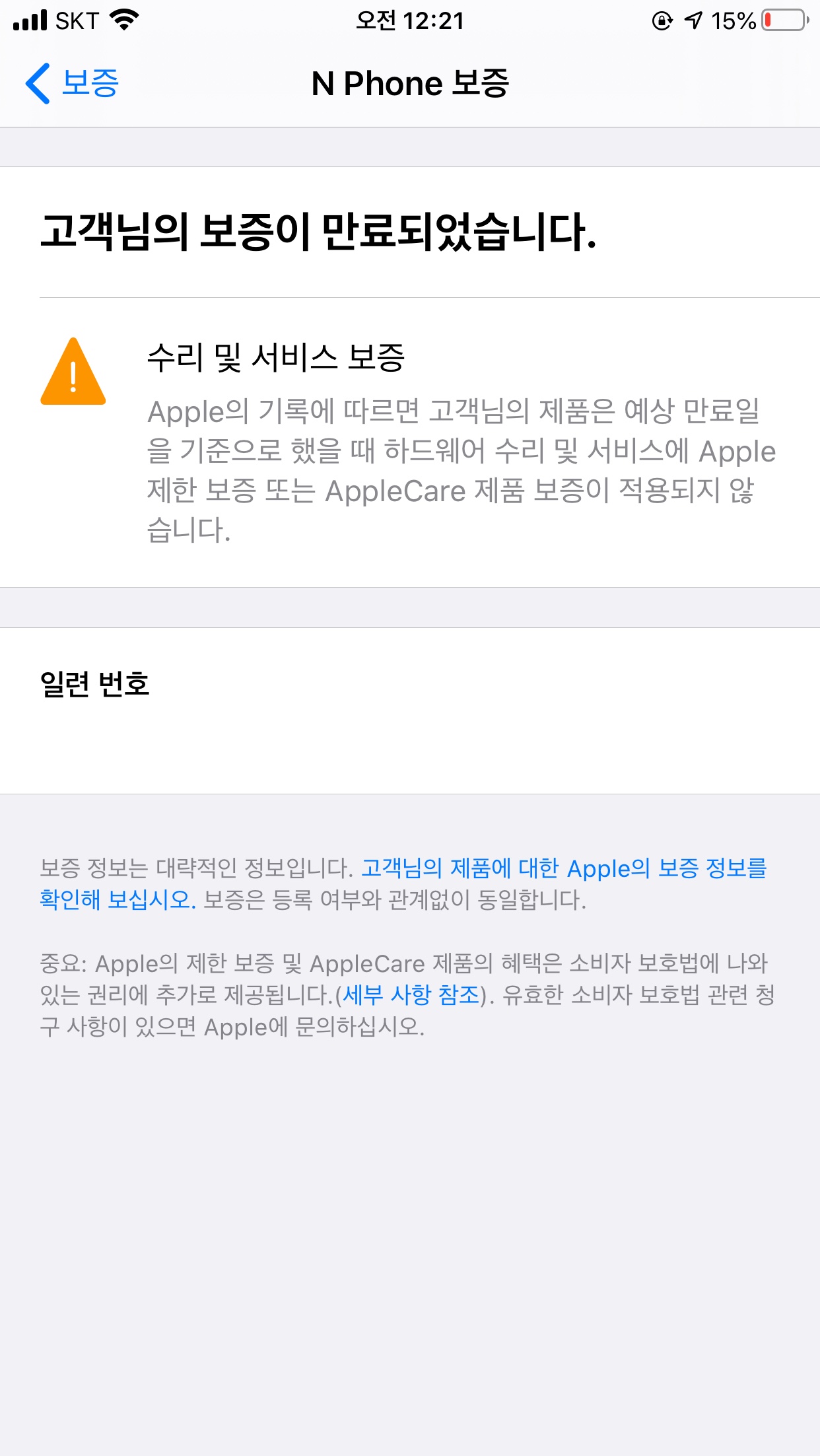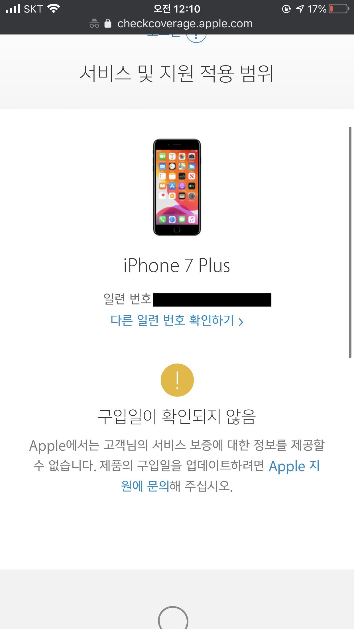 그리고 2달?쯤 사용한거같은데, 인터넷에서 9월 11일부터 구입한 아이폰은 2년 보증이 된다고 되있어서 사이트에 일련번호를 넣고 조회를 해봤는데요.