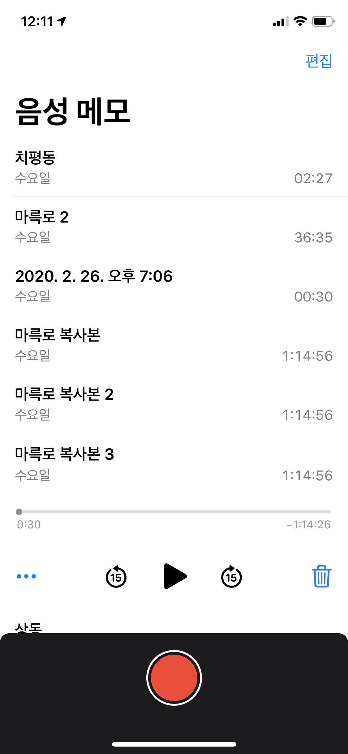 음성메모 1시간이상 저장되어있는데 30초만 재생
