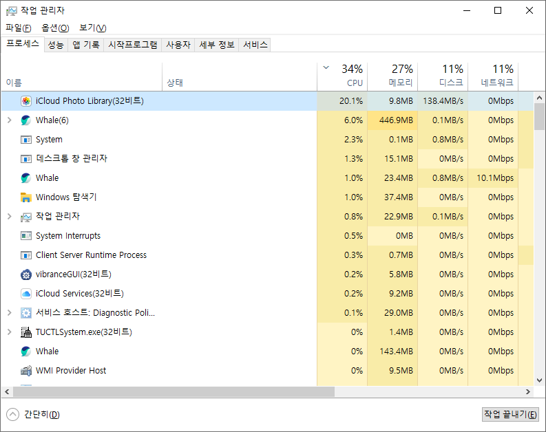 아이클라우드 포토라이브러리 CPU 점유율