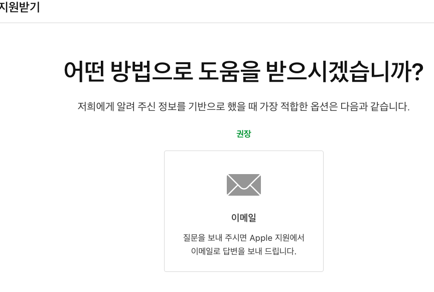 전화로 말씀드렸다고 하신걸 봐서 전화문의 후 글로 남기고 싶으신 거라면, Apple지원 문의하기 링크로 들어가시면 아래 스샷 처럼 이메일 문의 옵션이 뜰겁니다.