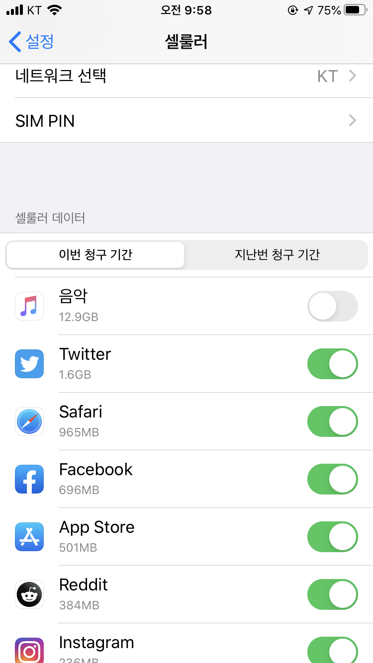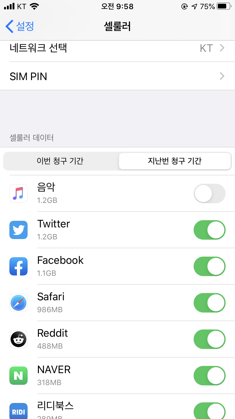 이번달에 데이터가 초과되어서 왜 그런가 했더니 애플 뮤직이 비정상적으로 데이터를 잡아먹었습니다....