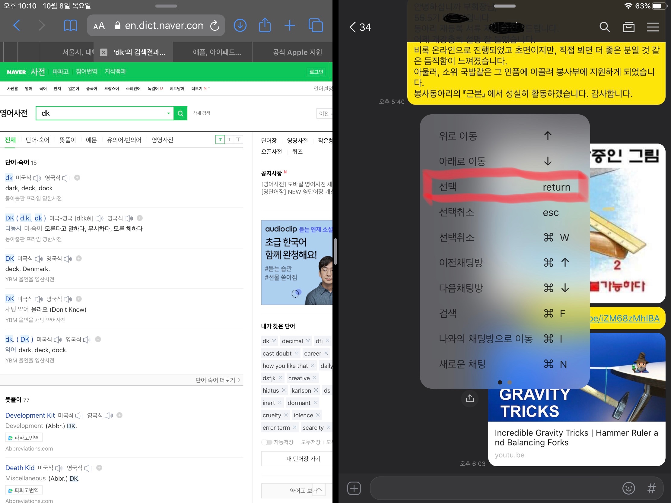 기본 브라우저인 사파리와 메모 어플을 동시에 띄우고 사용중이었는데요.