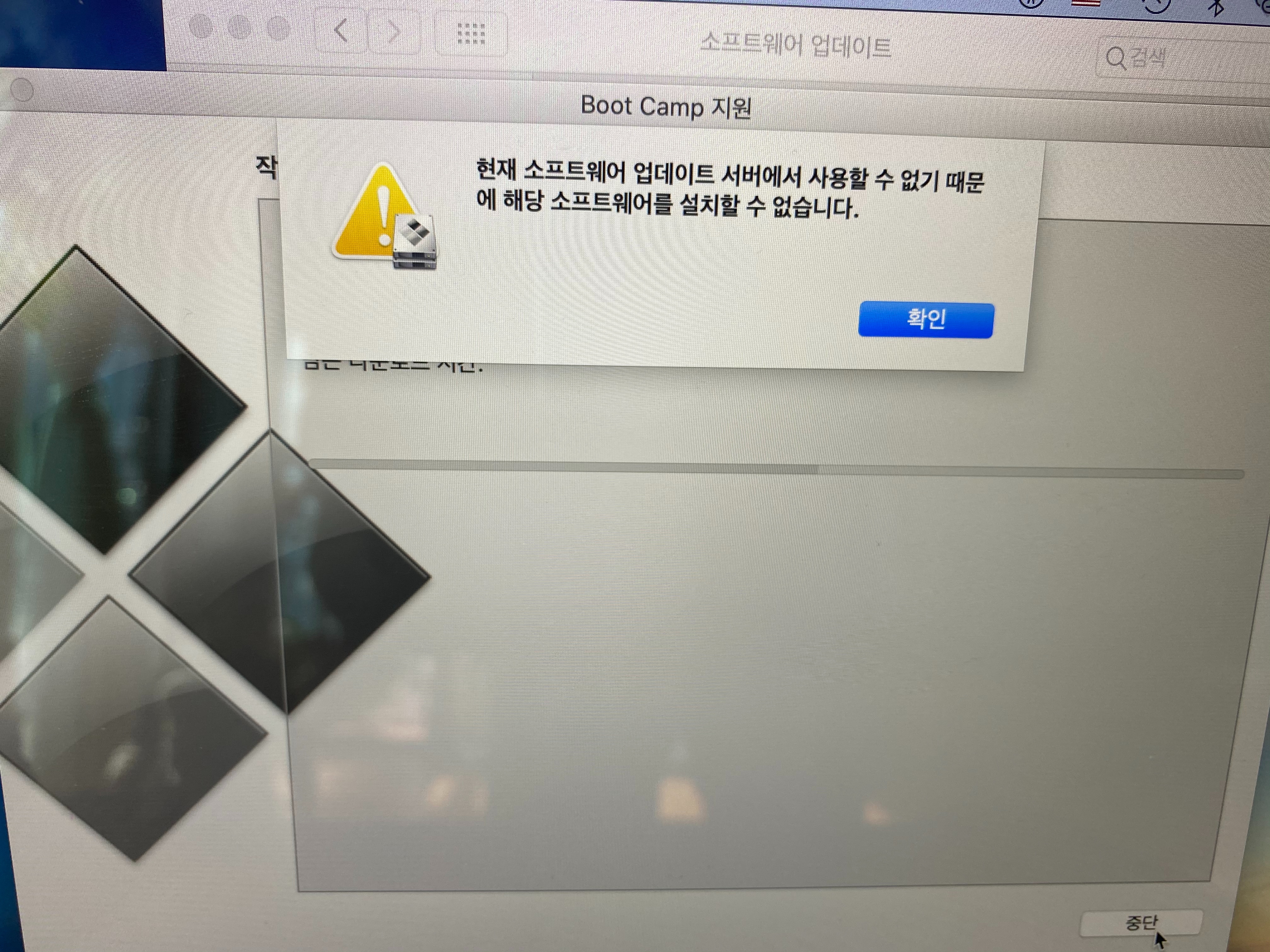 부트캠프 소프트웨어 다운로드 시 에러메세지
