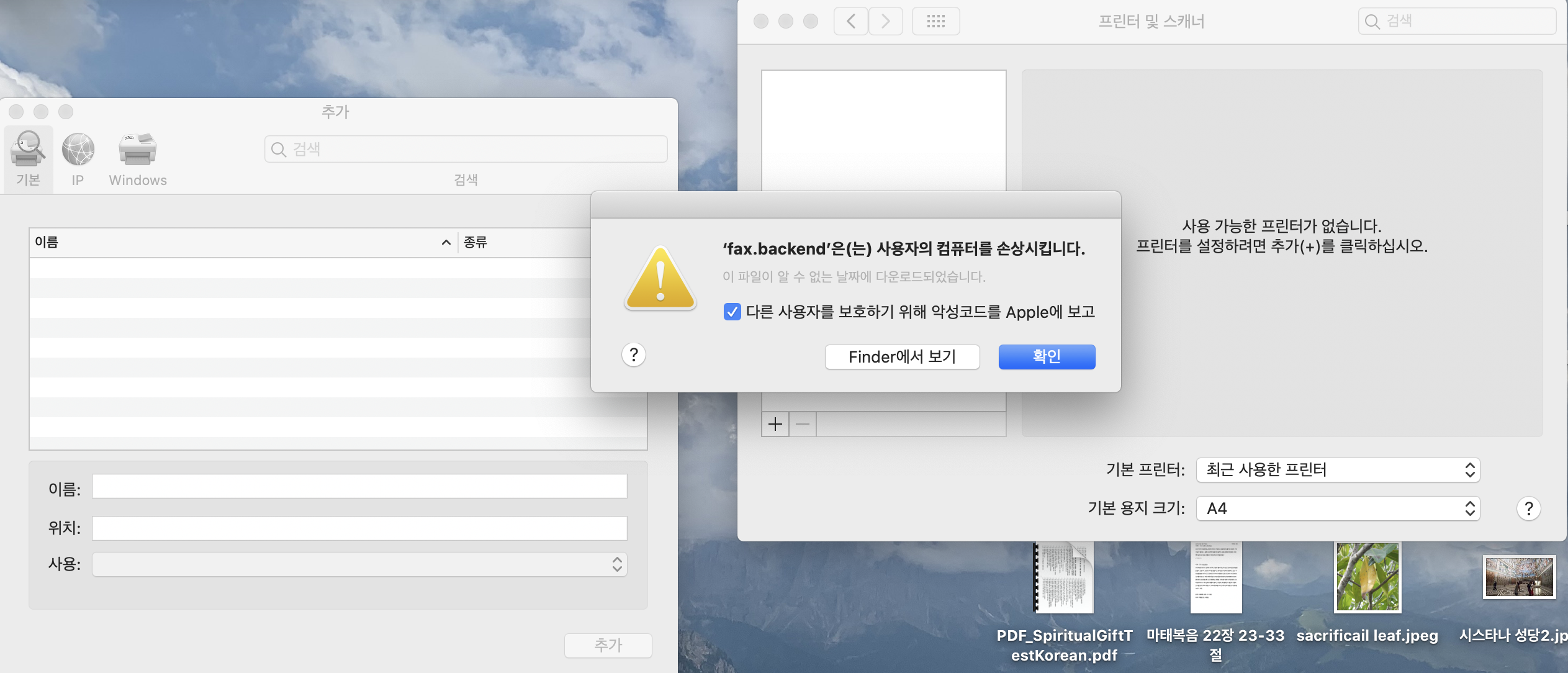 fax.backend’은(는) 사용자의 컴퓨터를 손상시킵니다.