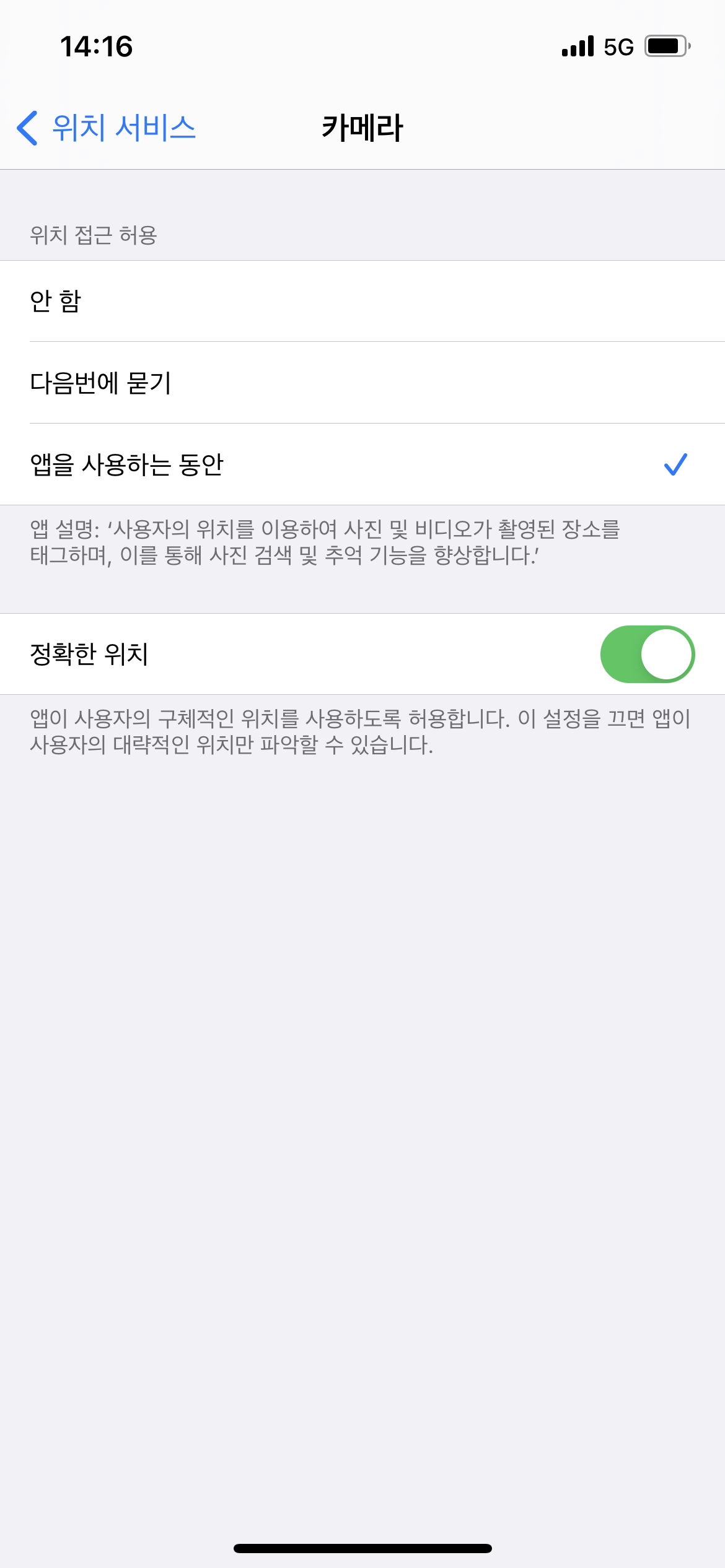 사진앱 내에 사진 상단 위치 정보 표시가 되지 않고 날짜와 촬영시각만 표시 되고 있다고 말씀 해 주셨는데요,