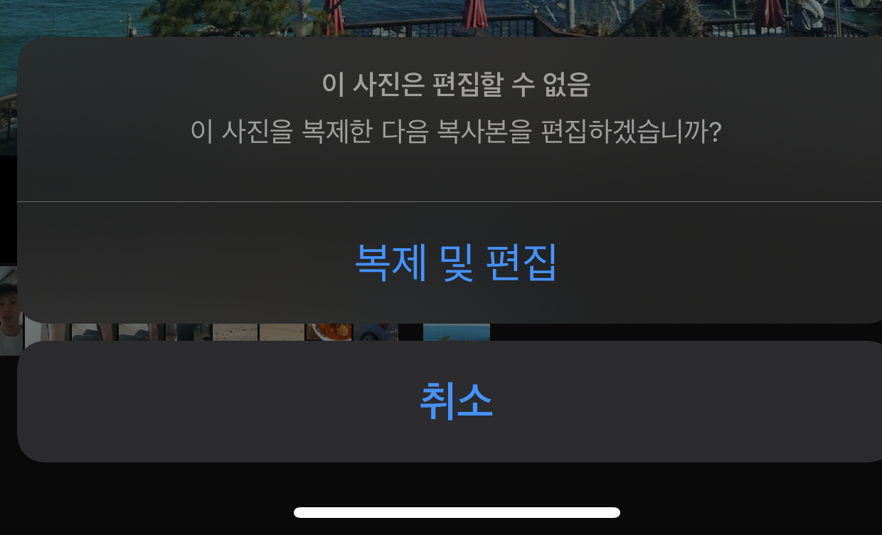 휴지통도 회색으로뜨구요무슨 이 사진은 편집할수 없음이라고 뜨고요