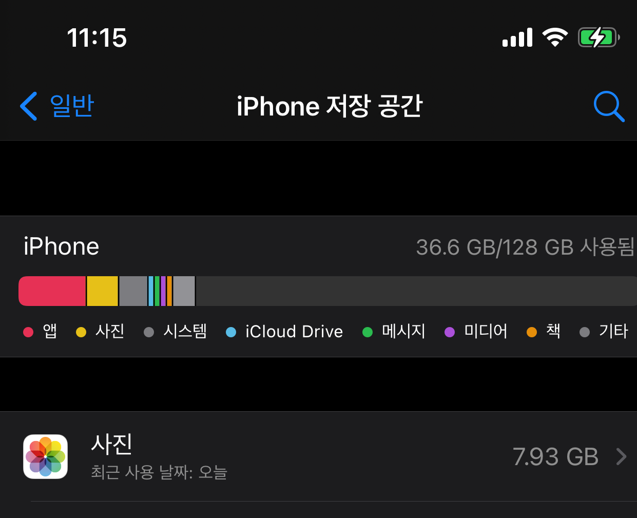 시스템 공간은 왜저런진ㄴ 모르겟는데 이거때문인거 같구요