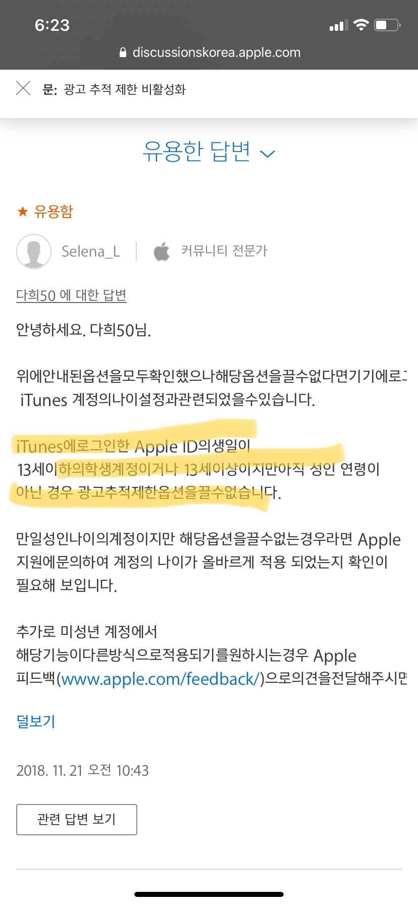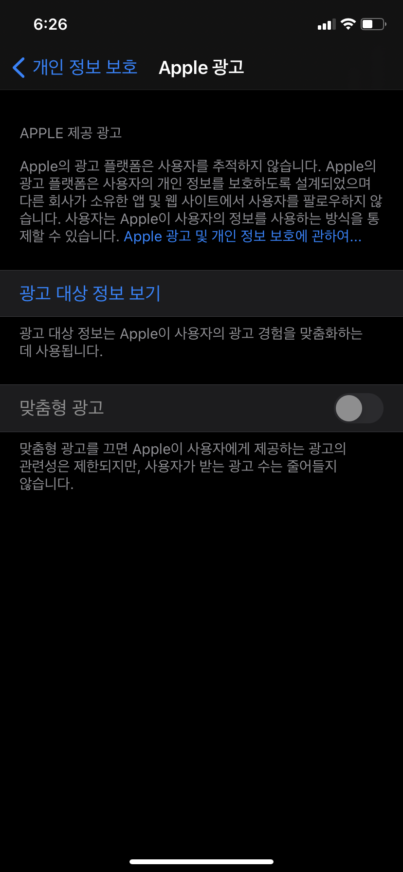 ios 14 인데 맞춤형 광고 활성화가 안되요.