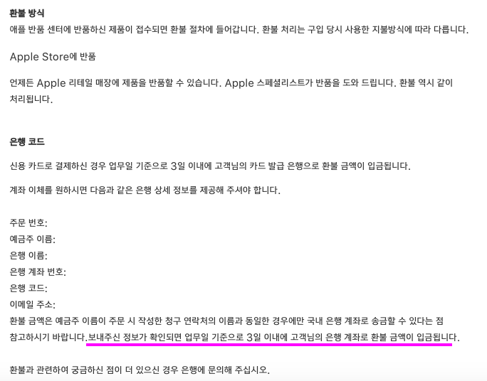 *애플워치 체크카드로 결제하고 취소 했는데 언제쯤 돈이 들어오나요?