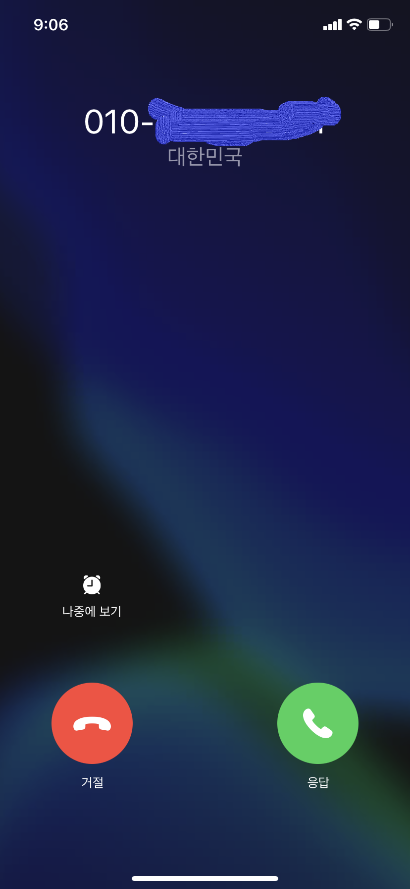 전화가 오면 응답버튼 위에 메시지 버튼이 나타나야 하는데 그림처럼 없습니다.