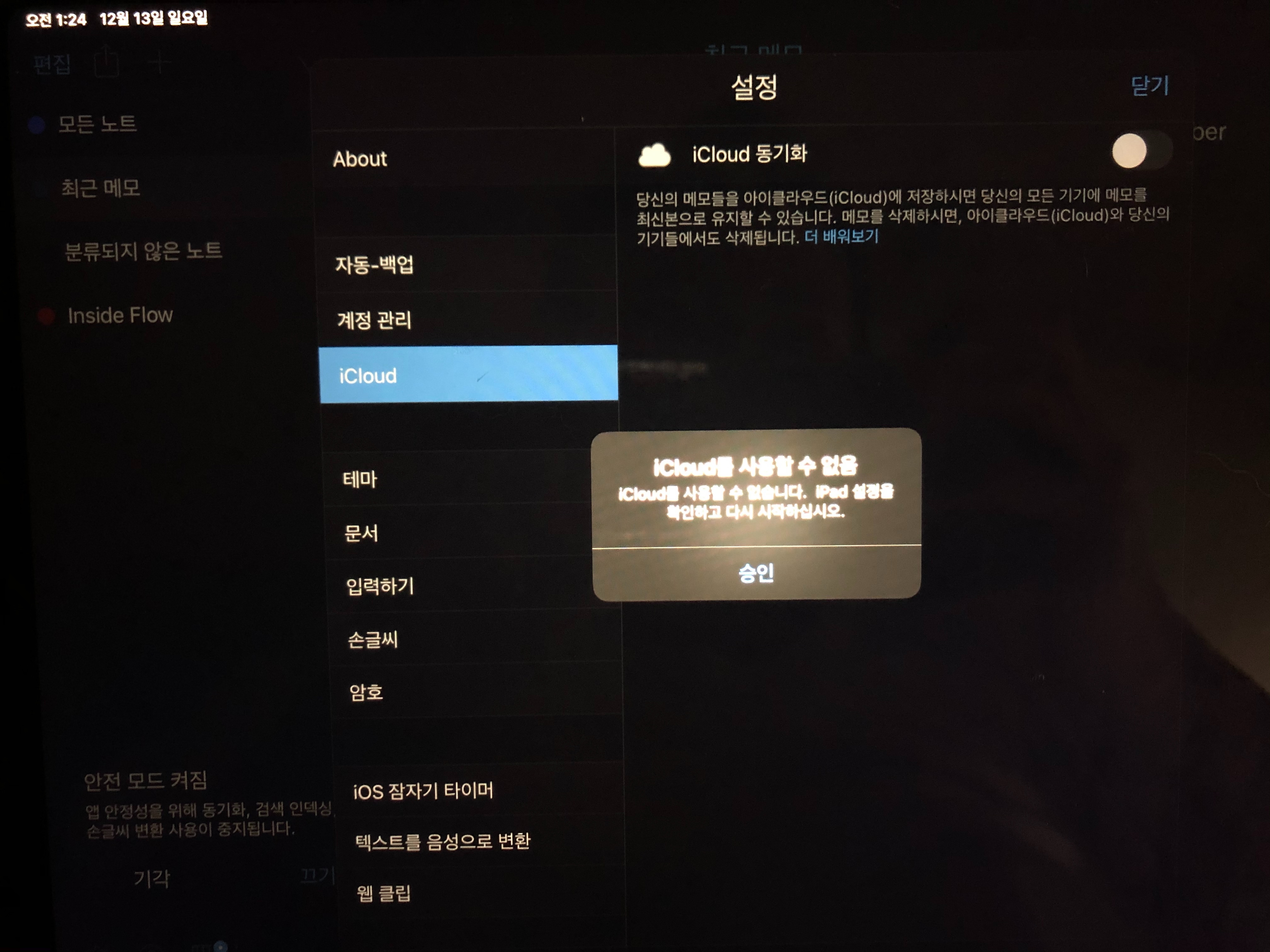 아이패드 ipad notability icloud 노타빌리티 아이클라우드 계정과 동기화가 안돼요