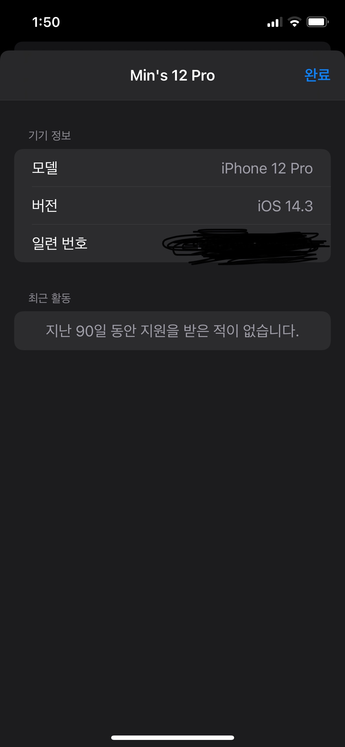구매 후 얼마전까지 애플 지원 앱과 웹페이지 상에서 제품 일련번호로 보증정보 조회가 가능했었습니다.