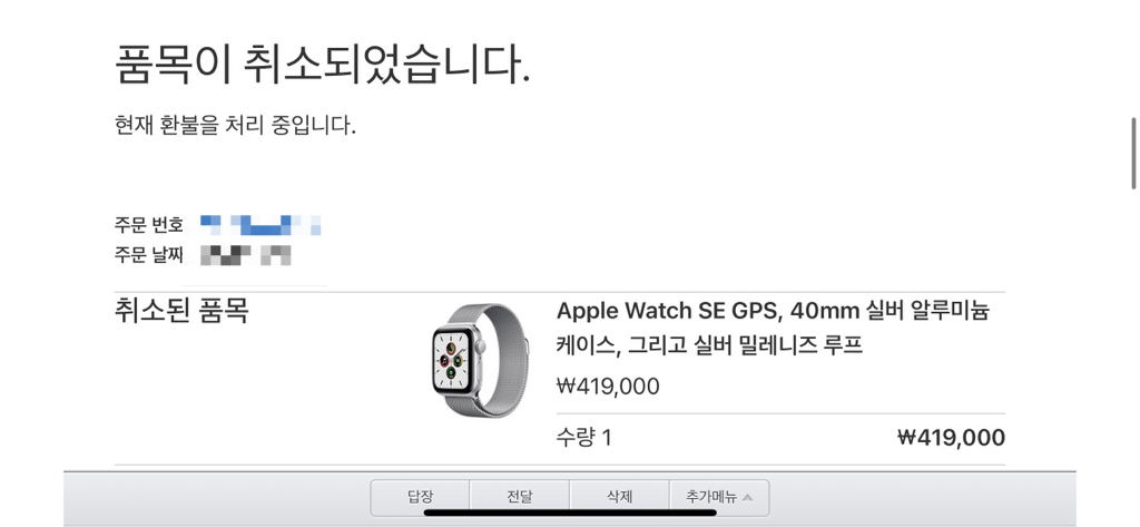 애플워치 픽업주문 후 취소하게 되었는데요!