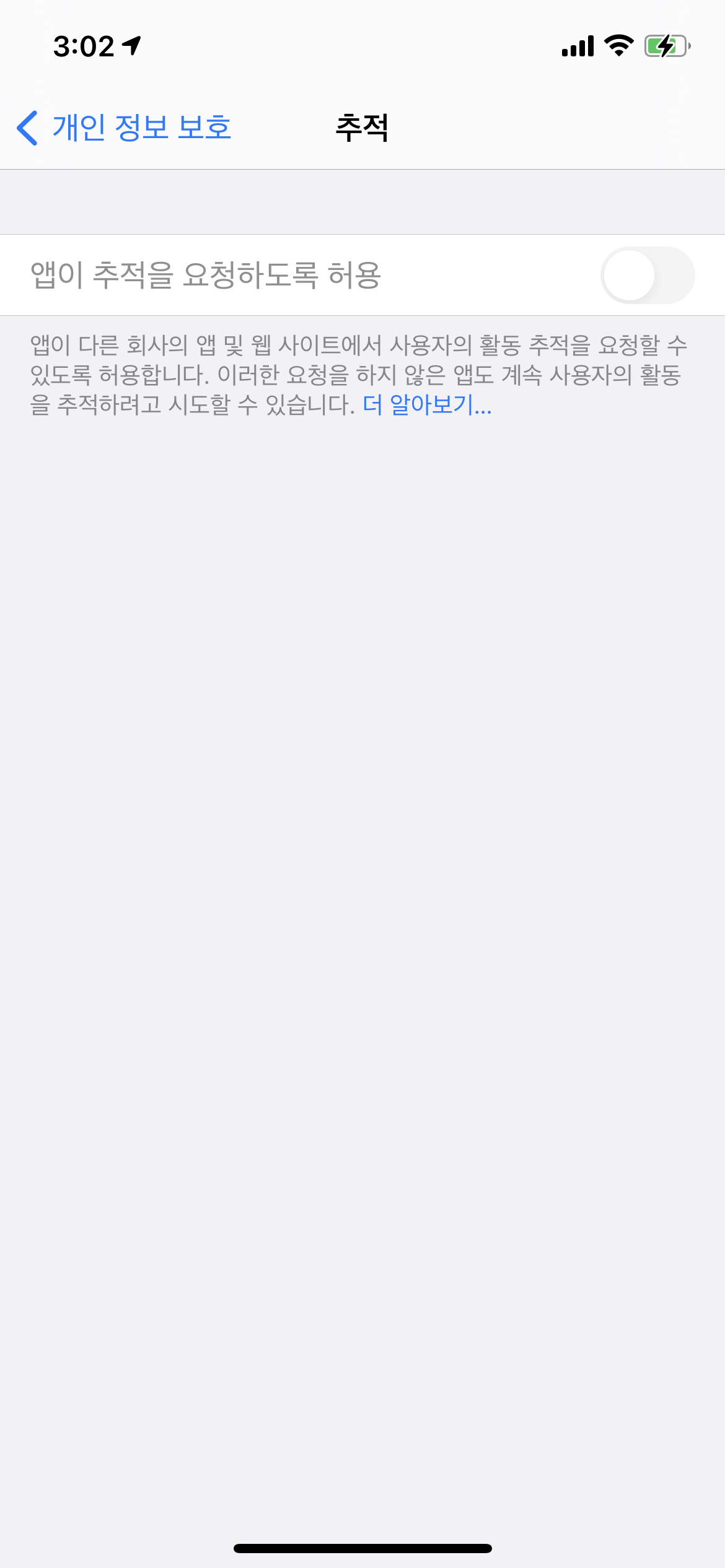 미성년자일 경우에는 앱 추적기능이 비활성화가 됩니다.