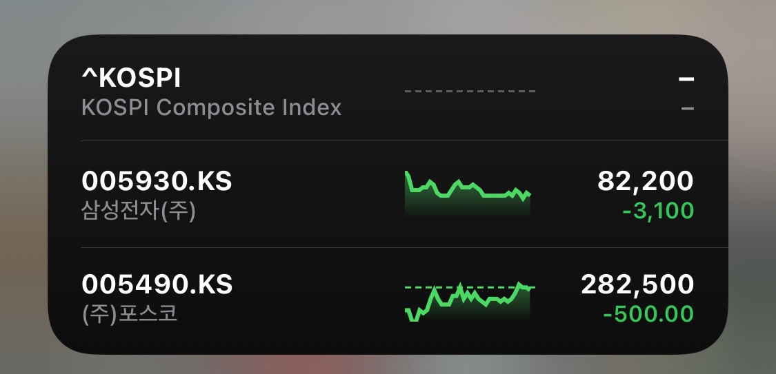 (현재 ^KOSPI 종목이 검색이 안되는 것으로 보아, 주식 앱에서 사라진 관심목록으로 판단됩니다.)